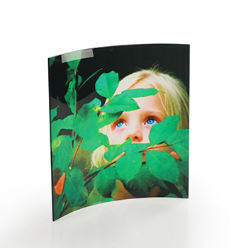 Our self-standing curved glass is the ideal way to display your favorite photos. Its unique characteristics make it a focal point wherever it is displayed.